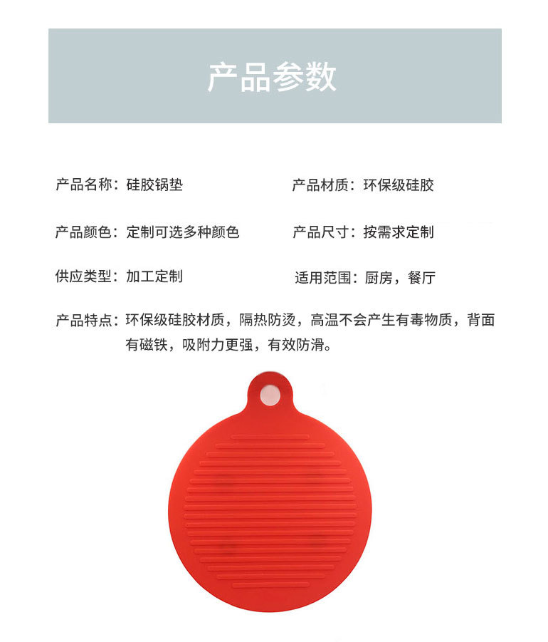 您的位置:首頁 > 產品中心 > 硅膠廚具用品 > 餐墊 > 硅膠餐墊定制,帶磁鐵硅膠隔熱鍋墊